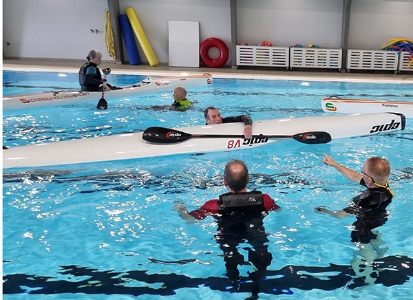 Første halvdel bestod af forevisningsteori samt efterfølgende øvning i svømmebadet af de mange detaljer.